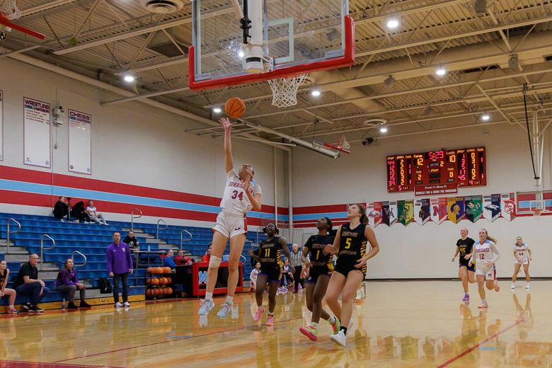 Senior Juliette Huff with the lay in during the Hurricanes conference math-up against Chicago Christian